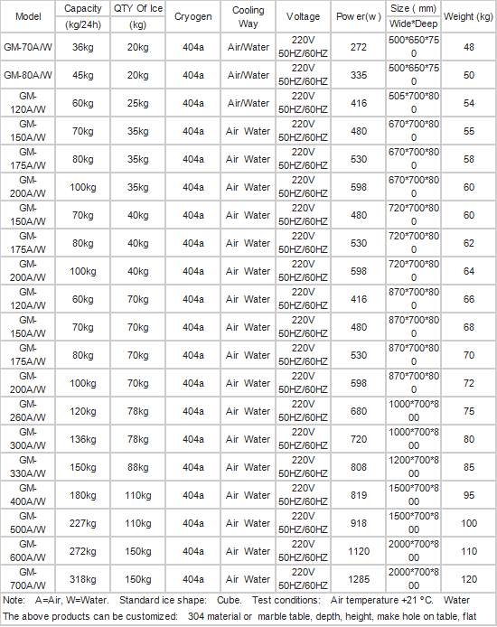 Technical Information of Blue Light Ice Maker: